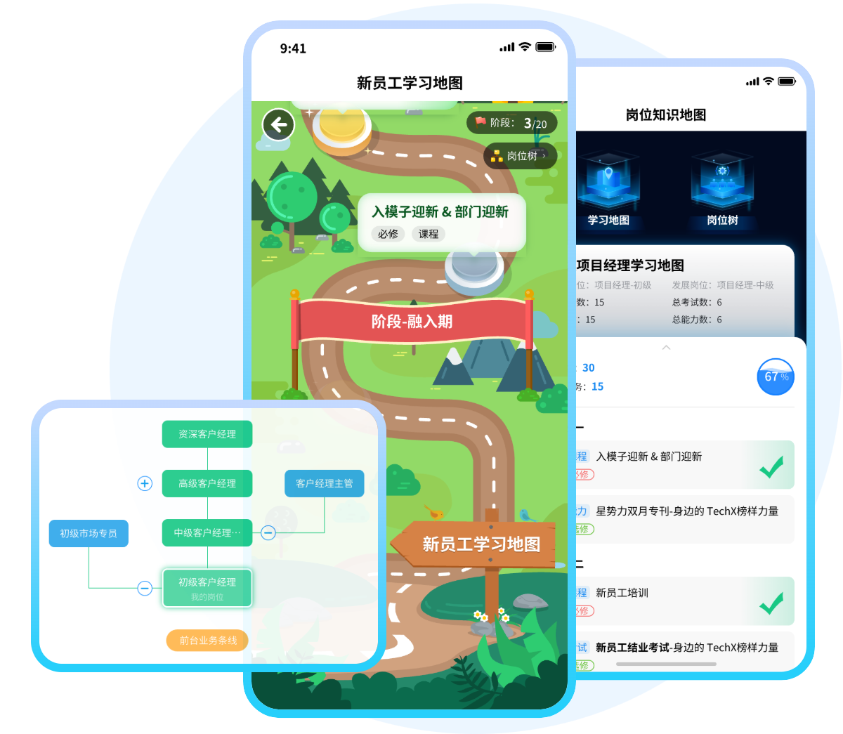 AI智能构建成长路径,基于人才发展WIDEA算法模型,搭建岗位、能力、任务模型的全面人才测评体系,借助AI开展人才盘点、企业人才画像,为平台内容建设与个性化学习发展决策提供支持,实现人才快速选拔与精准培养。