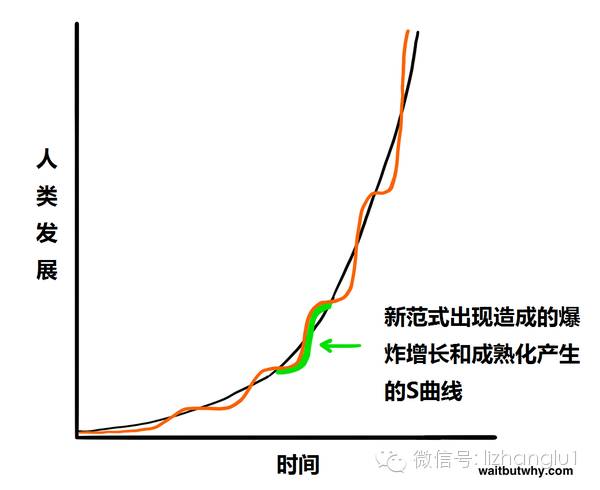 未来学家Ray Kurzweil把这种人类的加速发展称作加速回报定律(Law of Accelerating Returns)。之所以会发生这种规律,是因为一个更加发达的社会,能够继续发展的能力也更强,发展的速度也更快——这本就是更加发达的一个标准。19世纪的人们比15世纪的人们懂得多得多,所以19世纪的人发展起来的速度自然比15世纪的人更快。